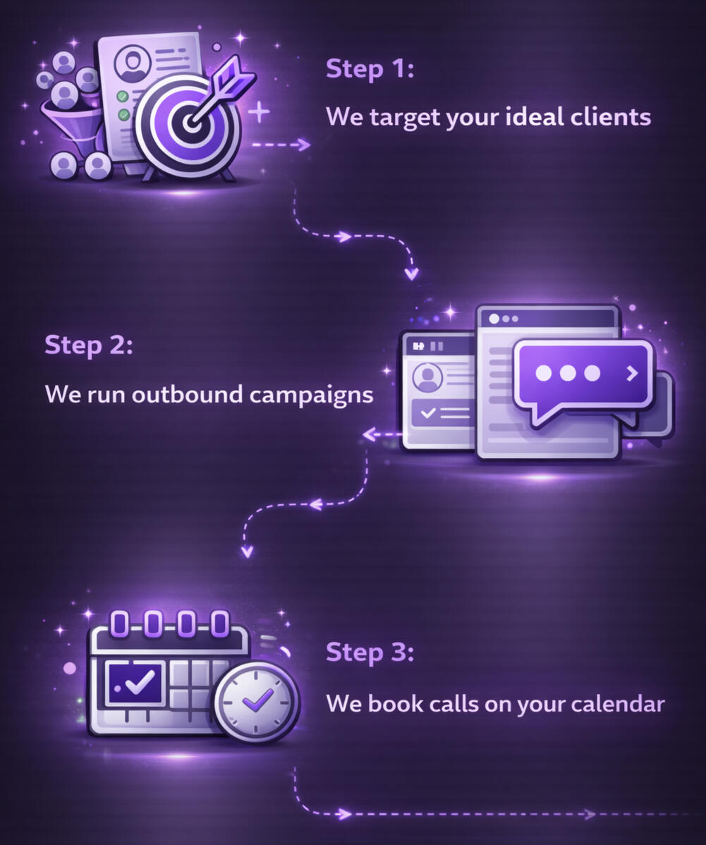 Our team handles LinkedIn outreach, follow-ups, and initial conversations.Step 3: We book calls on your calendar